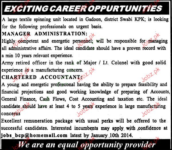 Apply as per details in job advertisement. Login to view further details of how to apply via https://www.jobz.pk online.