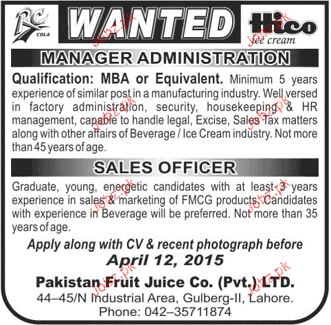Manager Administration and Sales Officers Job Opportunity