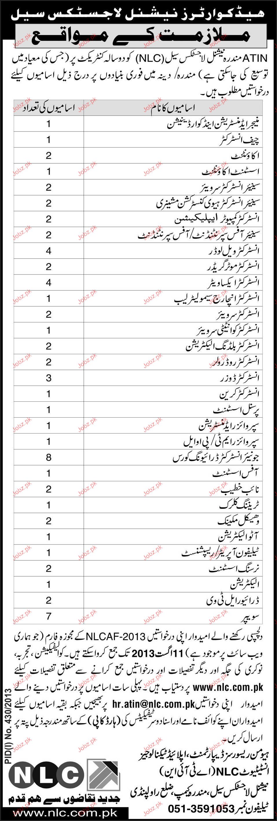 Apply as per details in job advertisement. Login to view further details of how to apply via https://www.jobz.pk online.