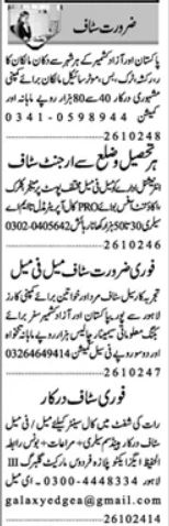 Candidates with Middle, Intermediate, Matric, Bachelor and Master etc. educational background will be preferred.
