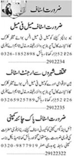 Private Company invites applications for job positions advertised in daily Dunya dated 29 December 2023 for following vacancies in Karachi, karachi Sindh Pakistan.
