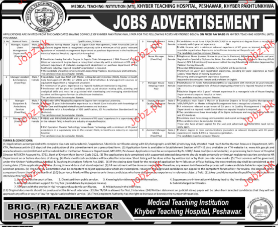 Apply as per details in job advertisement. Login to view further details of how to apply via https://www.jobz.pk online.