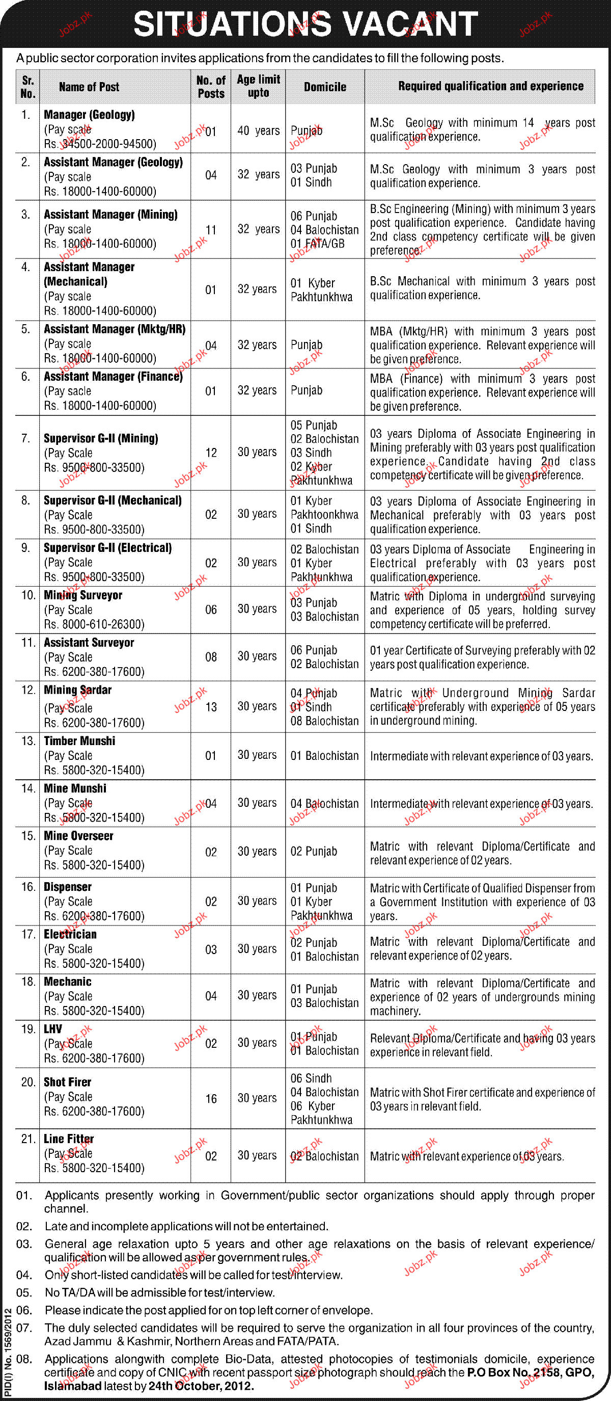 Apply as per details in job advertisement. Login to view further details of how to apply via https://www.jobz.pk online.