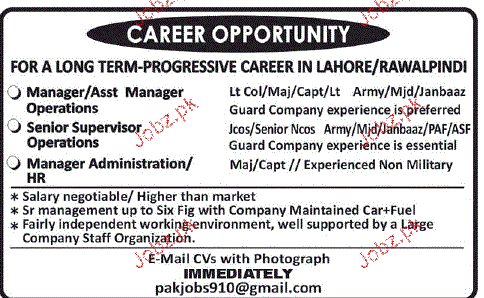 Manager, Assistant Manger, Senior Supervisor Wanted