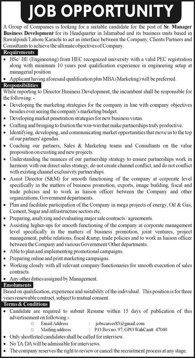 Manager Business Development Jobs In Karachi