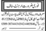 Vacant posts including accountant, manager, call operator, public relation officer, clerk, pro and helper are announced in Private Company Lahore, multan Punjab Pakistan as per 21 February 2023 advertisement in daily Khabrain Newspaper. Candidates with Intermediate, Middle, Bachelor and Matric etc. educational background will be preferred.