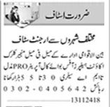 Apply as per details in job advertisement. Login to view further details of how to apply via https://www.jobz.pk online.