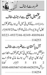Apply as per details in job advertisement. Login to view further details of how to apply via https://www.jobz.pk online.
