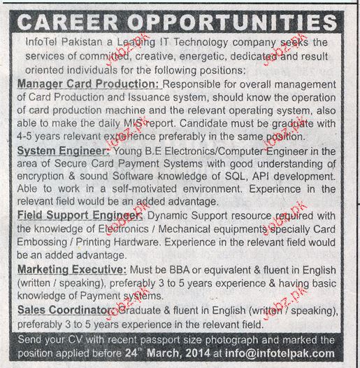 Apply as per details in job advertisement. Login to view further details of how to apply via https://www.jobz.pk online.