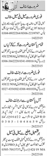 Private Company jobs advertisement dated about 28 February 2023 in daily Dunya Newspaper invites application for the vacant post of computer operator, male staff, clerk, pro, office staff, field work marketing staff, accountant, public relations officer, call operator, female staff, manager, office boy and helper in Karachi, karachi Sindh Pakistan. Preferred Education is Master, Bachelor, Matric, Middle and Intermediate etc.