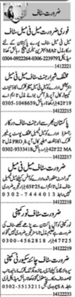 Private Company is looking for candidates for following posts as per job advertisement published in daily Dunya Newspaper of December 14, 2022 for location Lahore, lahore Punjab Pakistan: