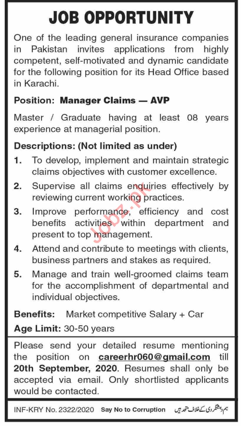Apply as per details in job advertisement. Login to view further details of how to apply via https://www.jobz.pk online.