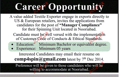 Apply as per details in job advertisement. Login to view further details of how to apply via https://www.jobz.pk online.
