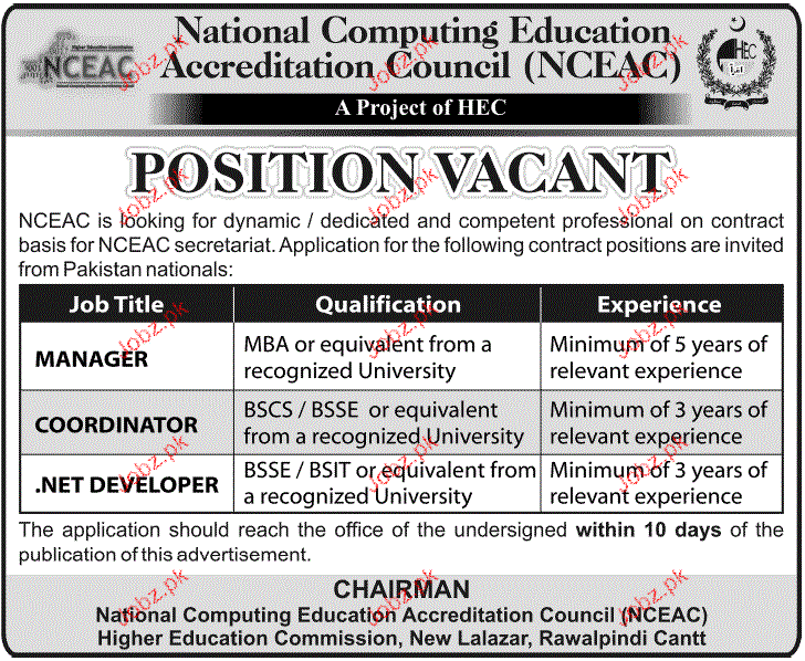Apply as per details in job advertisement. Login to view further details of how to apply via https://www.jobz.pk online.