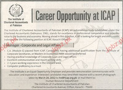 Apply as per details in job advertisement. Login to view further details of how to apply via https://www.jobz.pk online.