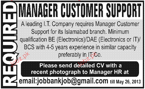 Manager Customer Support Job Opportunity