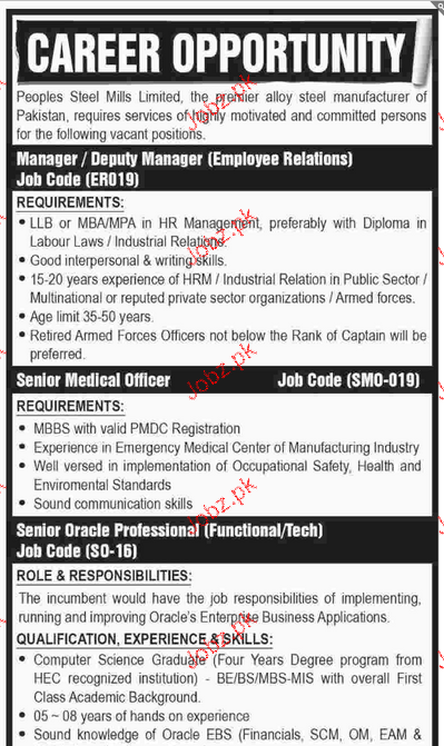 Apply as per details in job advertisement. Login to view further details of how to apply via https://www.jobz.pk online.