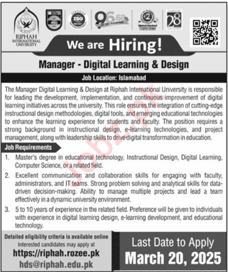 Apply as per details in job advertisement. Login to view further details of how to apply via https://www.jobz.pk online.