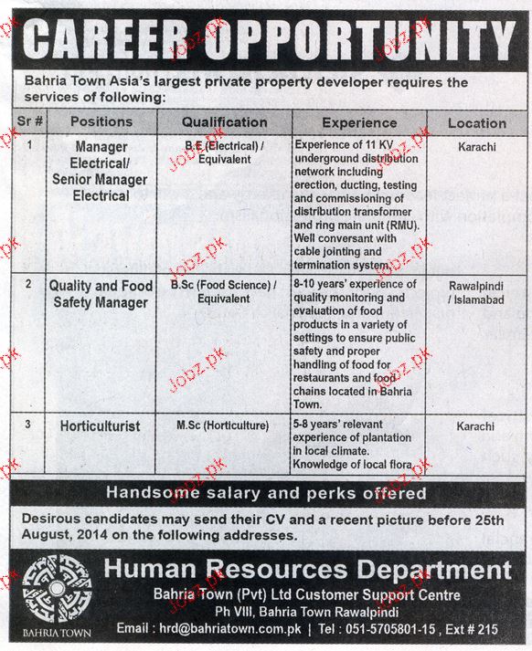 Apply as per details in job advertisement. Login to view further details of how to apply via https://www.jobz.pk online.
