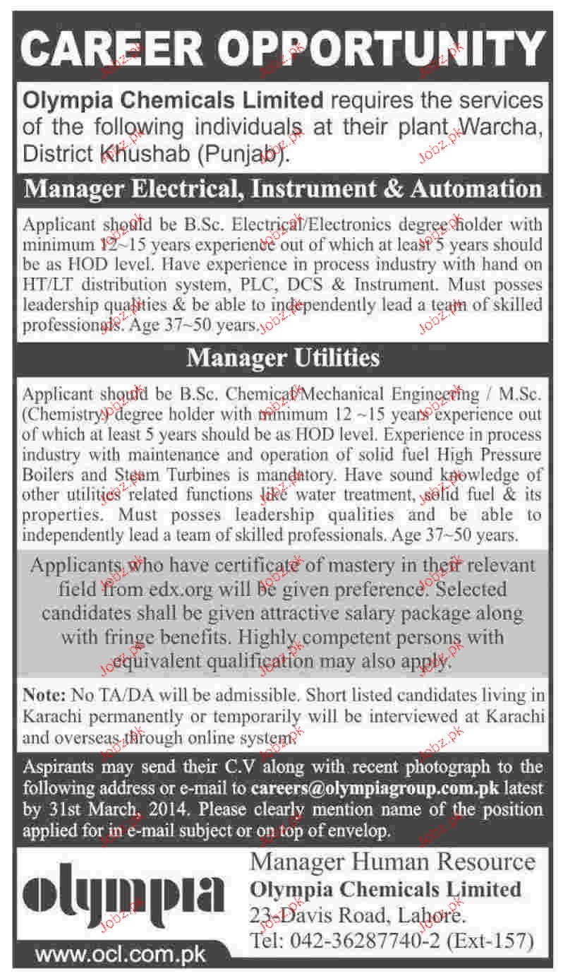 Manager Electrical Instrument And Manager Utilities Wanted