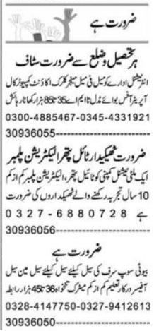 Private Company Multan, multan Punjab Pakistan invites applications from eligible candidates for the post of manager, accountant, computer call operator, office boy, female manager, plumber, electrician, clerk and salesman as per advertisement of October 9, 2025 published in daily Express Newspaper. Educational qualifications required Bachelor, BA, Intermediate, Middle, B.com and Matric etc.