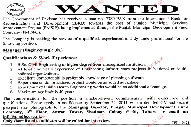 Apply as per details in job advertisement. Login to view further details of how to apply via https://www.jobz.pk online.
