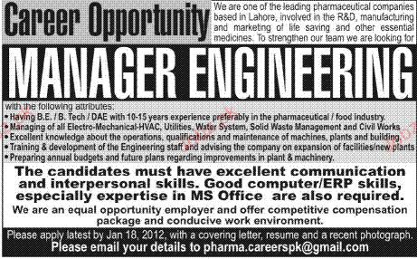 Manager Engineering Job Opportunity
