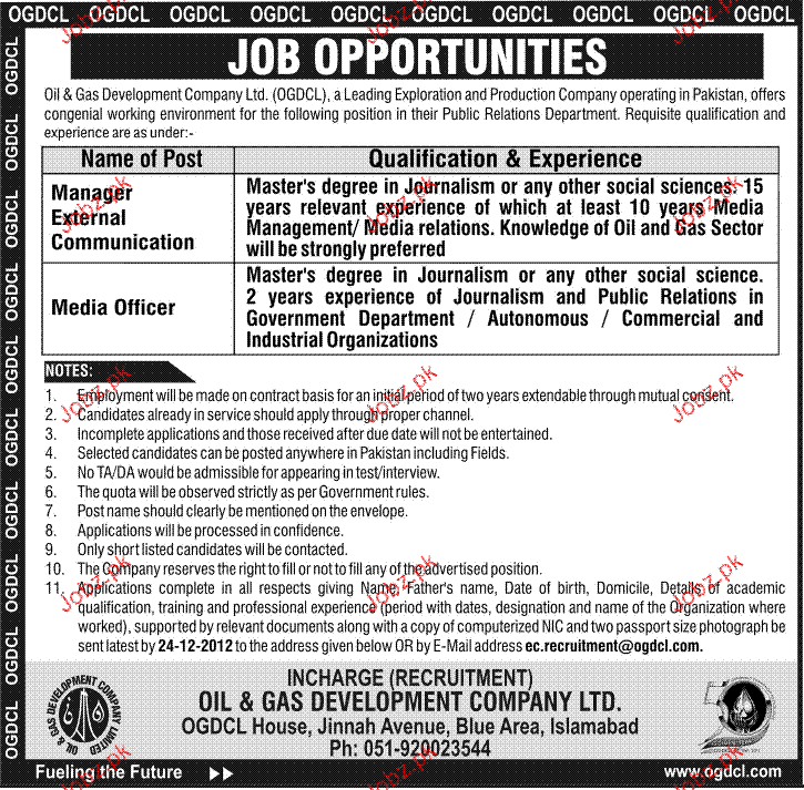 Apply as per details in job advertisement. Login to view further details of how to apply via https://www.jobz.pk online.
