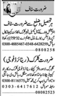 Private Company jobs advertisement dated about 8 August 2025 in daily Dunya Newspaper invites application for the vacant post of clerk, computer call operator, female manager, accountant, fauji clerk, manager and office boy in Gulberg Lahore, lahore Punjab Pakistan. Preferred Education is I.com, Matric, Middle, BA, Bachelor, Others and Intermediate etc.