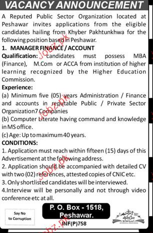 Apply as per details in job advertisement. Login to view further details of how to apply via https://www.jobz.pk online.
