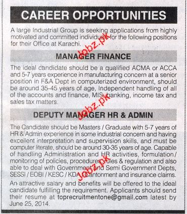 Manager Finance And Deputy Manager HR & Admin Wanted
