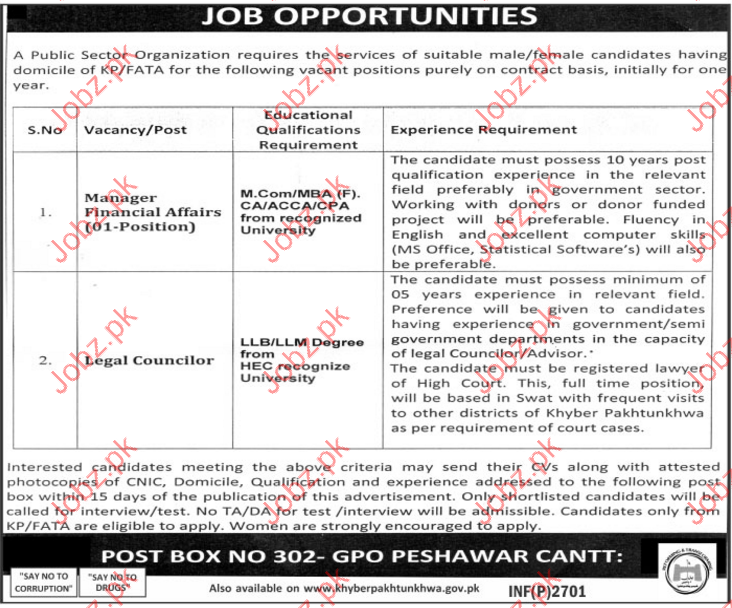 Manager Financial Affairs Jobs In Public Sector Organisatio