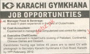 Manager Food & Beverage, Cost Accountant Job Opportunity
