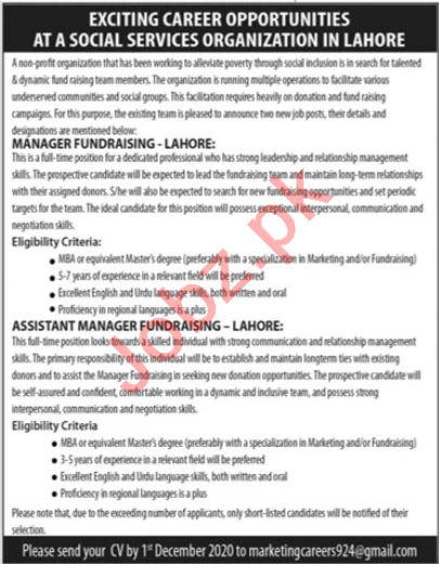 Manager Fundraising & Assistant Manager Fundraising Jobs