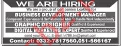 Manager, Graphic Designer & Digital Marketing Expert Jobs