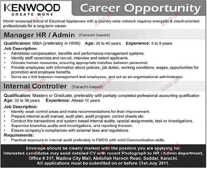 Apply as per details in job advertisement. Login to view further details of how to apply via https://www.jobz.pk online.
