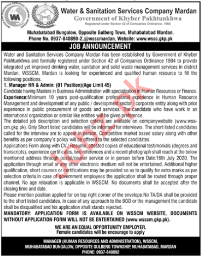 Manager HR & Admin Jobs 2020 In WSSCM Mardan