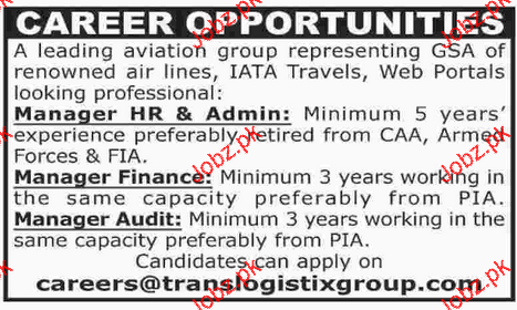 Manager HR, Manager Finance and Manager Audit Wanted
