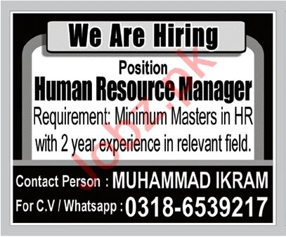 Manager & Human Resource Manager Jobs 2021 In Multan