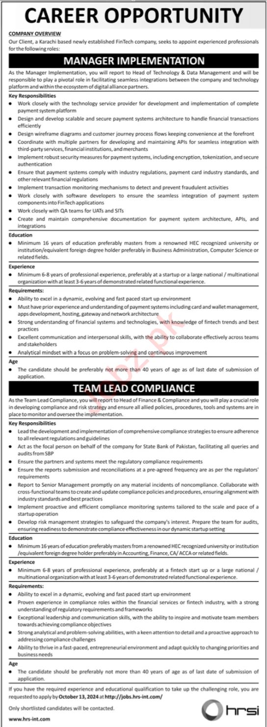 Manager Implementation& Team Lead Compliance Jobs in HRSI
