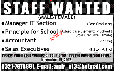 Apply as per details in job advertisement. Login to view further details of how to apply via https://www.jobz.pk online.
