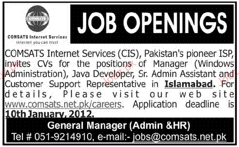 Manager, Java Developer, Senior Admin Assistant Required