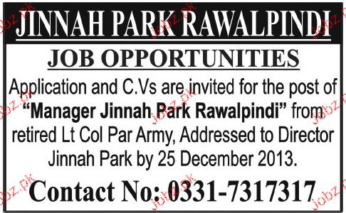 Manager Jinnah Park Rawalpindi Job Opportunity