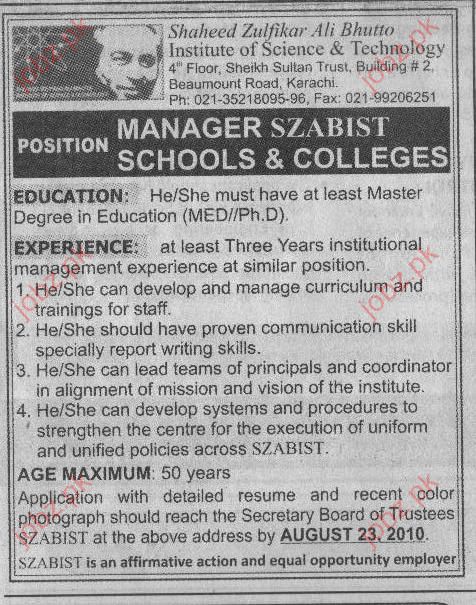 Apply as per details in job advertisement. Login to view further details of how to apply via https://www.jobz.pk online.