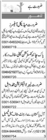 Private Company Lahore, lahore Punjab Pakistan invites applications from eligible candidates for the post of medical officer, office boy, electrician, manager, doctor, clerk, labor, call operator, security officer and supervisor as per advertisement of September 3, 2024 published in daily Express Newspaper. Preferred Education is Intermediate, Middle, MBBS, Bachelor, Matric and BA etc.