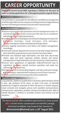Apply as per details in job advertisement. Login to view further details of how to apply via https://www.jobz.pk online.