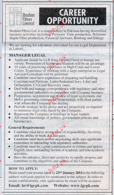 Apply as per details in job advertisement. Login to view further details of how to apply via https://www.jobz.pk online.
