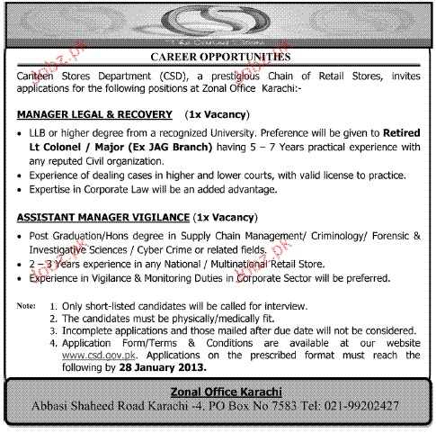 Latest Canteen Stores Department Management Posts Karachi 2025