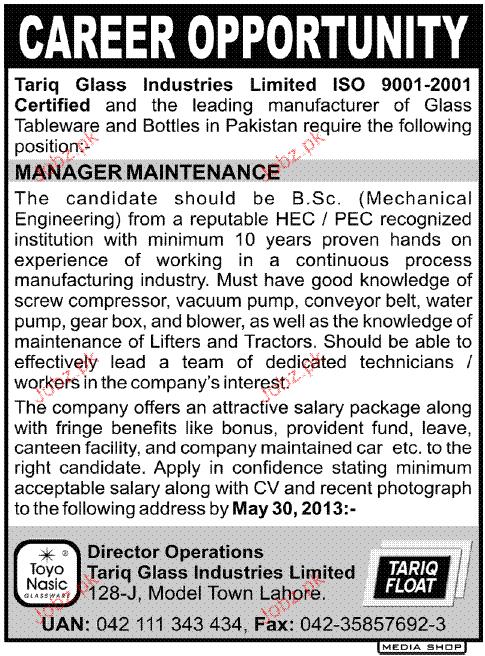 Apply as per details in job advertisement. Login to view further details of how to apply via https://www.jobz.pk online.