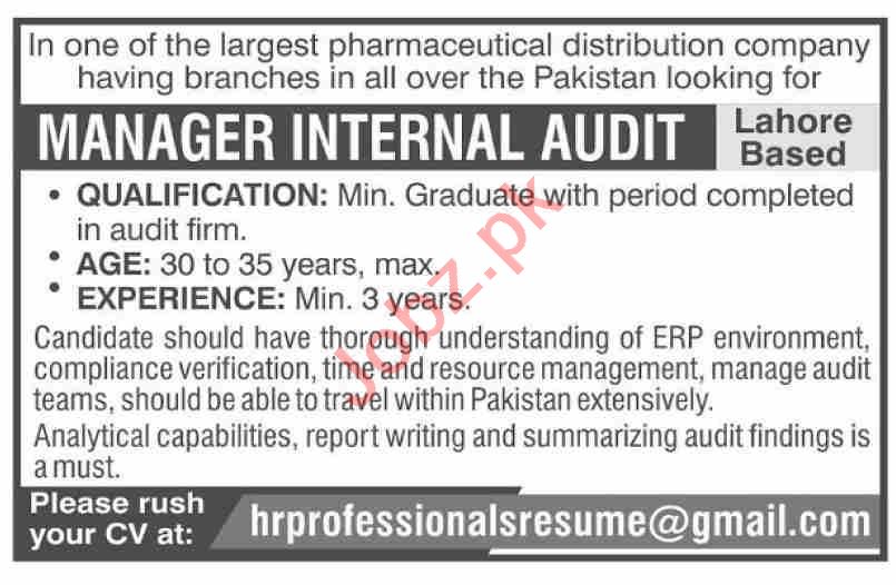 Manager & Manager Internal Audit Jobs 2020 In Lahore